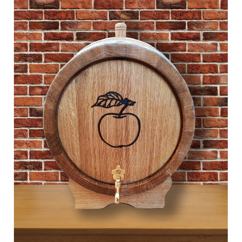 D’accuei » Tonneaux en bois avec gravure » Tonneau en bois fait main en chêne JABLKO avec robinet et support