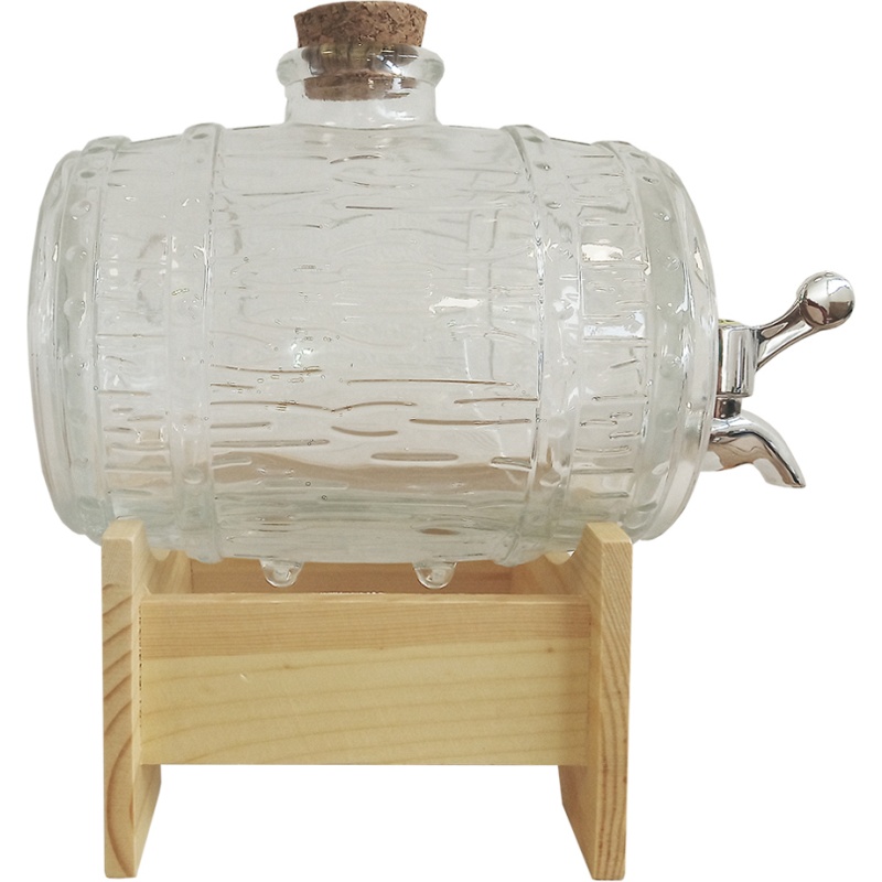 Tonneau en verre 1L transparent avec base en bois et robinet