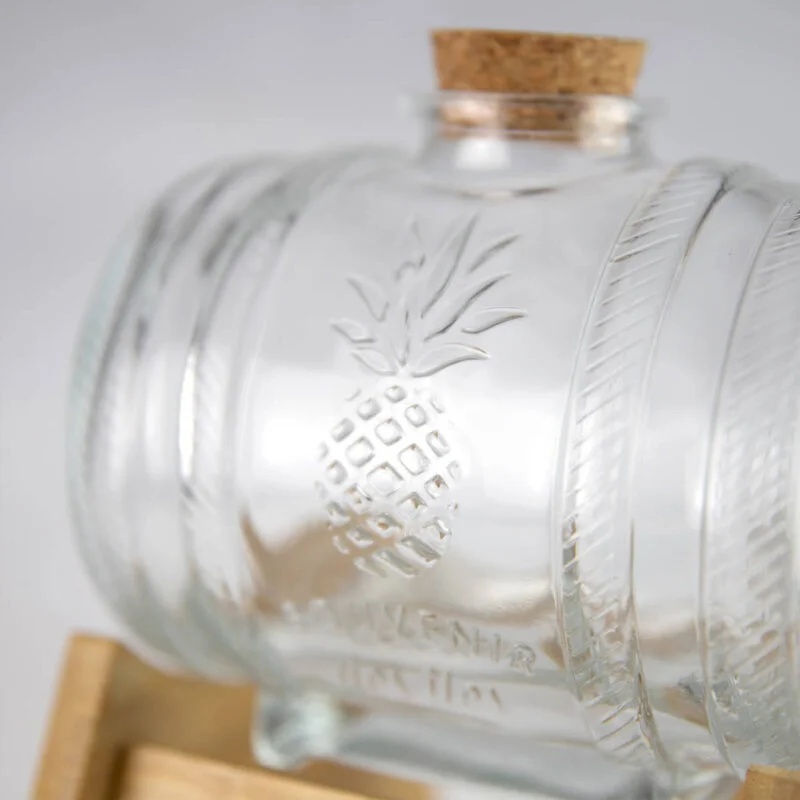 D’accuei » Fûts en verre » Tonneau en verre 1L transparent avec socle en bois et robinet - ananas
