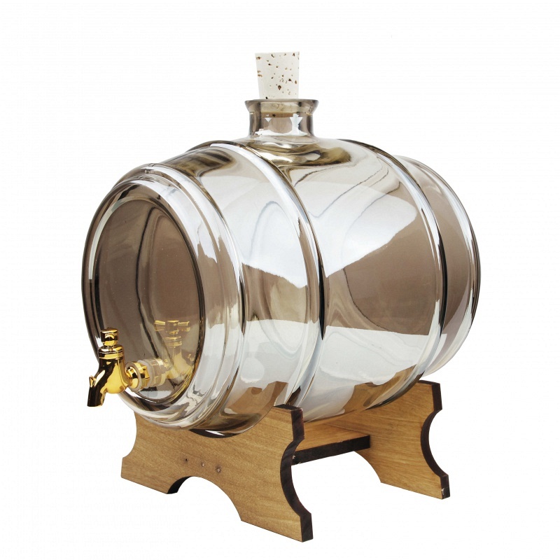 D’accuei » Fûts en verre » Tonneau en verre de 5 L avec abat-jour gris, base en bois et robinet doré