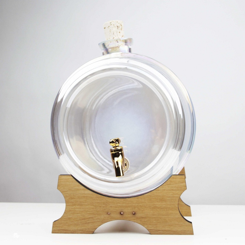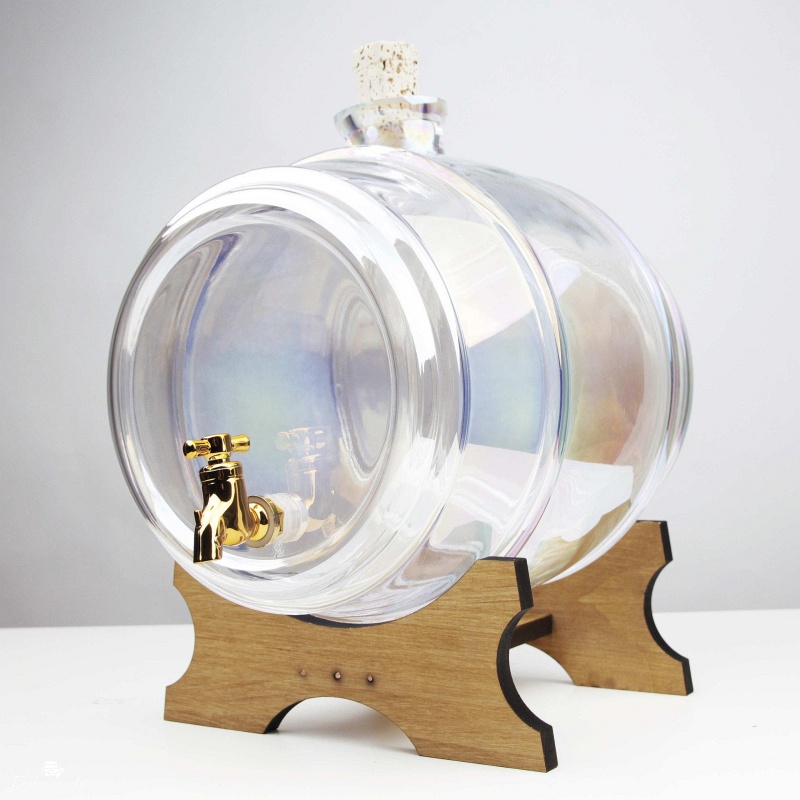 D’accuei » Fûts en verre » Tonneau en verre de 5 L avec teinte arc-en-ciel, base et robinet en bois