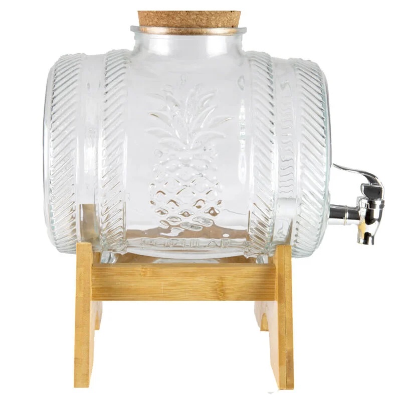 Tonneau en verre transparent 5L avec socle en bois et robinet - Ananas