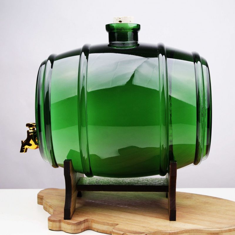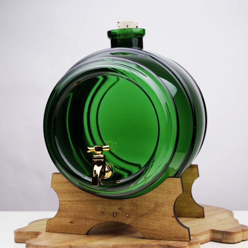 D’accuei » Fûts en verre » Tonneau en verre vert de 4 L avec base en bois et robinet