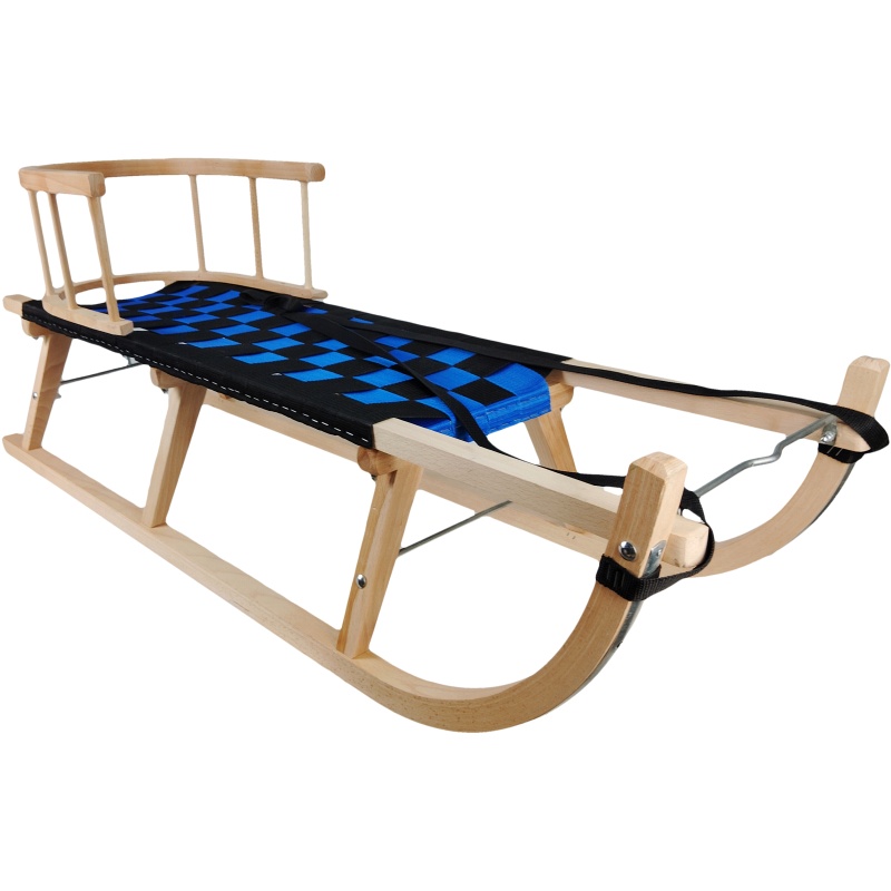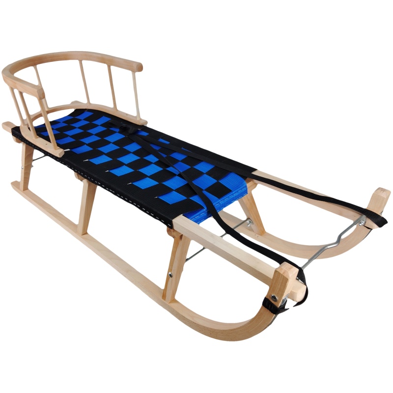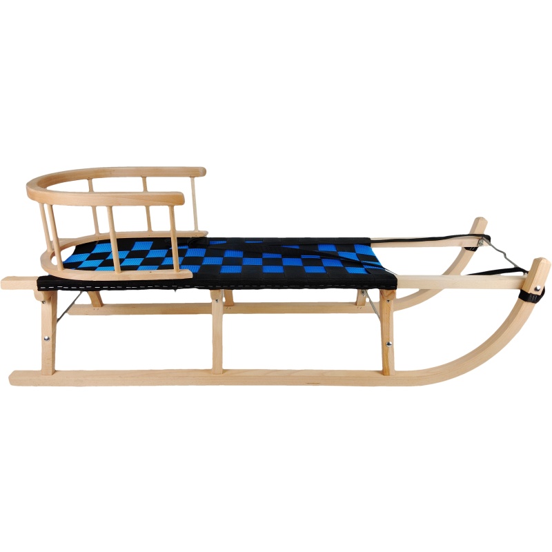 Cette luge en bois avec dossier est un moyen de transport hivernal fiable pour les enfants, alliant savoir-faire traditionnel et style moderne et sportif. Le siège tressé bleu-noir en sangles résistantes lui confère un look moderne, tandis que sa structure en hêtre massif assure une stabilité maximale. Grâce à son dossier ergonomique en bois, cette luge est idéale pour les plus petits qui ont besoin de soutien en position assise. Elle est également équipée d'une sangle de traction pratique pour un guidage confortable. Un excellent choix pour les parents recherchant sécurité, qualité et style.