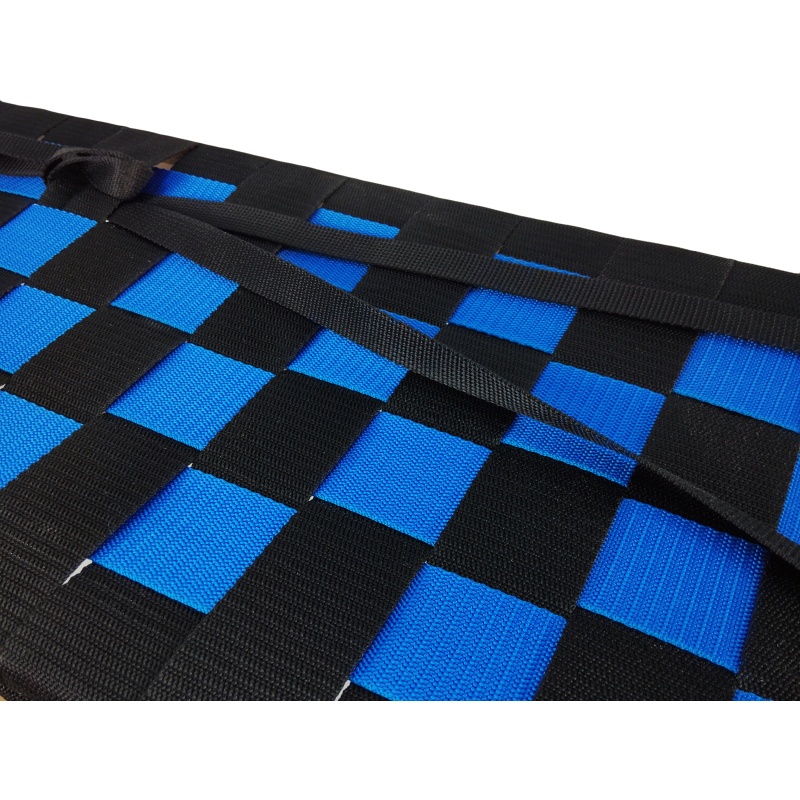 • Siège en sangles colorées – Style et fonctionnalité – Le siège est fabriqué en sangles de haute qualité et très résistantes, déclinées dans une combinaison de bleu et de noir. La sangle est tendue uniformément, conserve sa forme et offre un confort optimal, même en position assise prolongée.