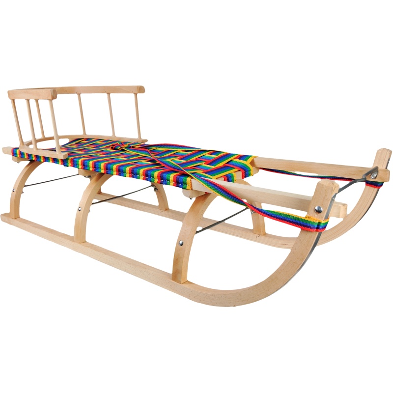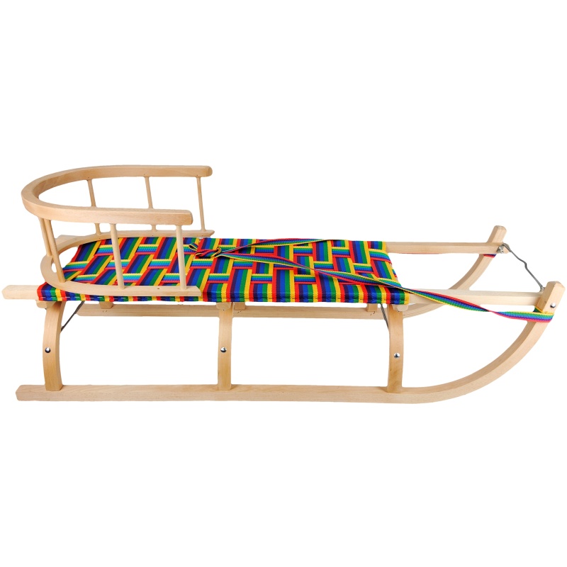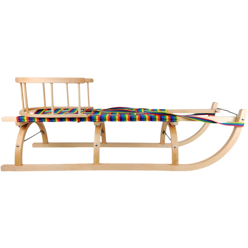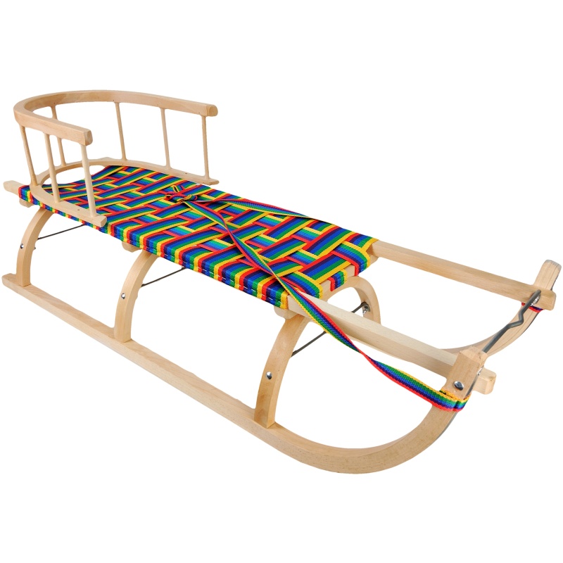 Cette luge en bois avec dossier est la solution idéale pour les parents à la recherche d'une luge sûre, stable et esthétique pour leurs enfants. Sa construction en hêtre massif est complétée par un dossier ergonomique et trois arches qui assurent une excellente stabilité et une répartition homogène du poids. L'assise en sangles de couleur vive est non seulement confortable et élastique, mais aussi extrêmement solide et résistante à l'humidité. La sangle de traction avant et les renforts métalliques à l'avant et en dessous confèrent à cette luge la solidité, la fonctionnalité et l'élégance nécessaires.