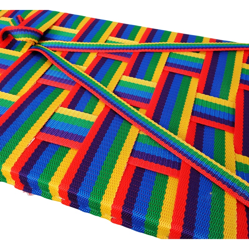 • Siège tressé coloré - Confort et style Le siège est fabriqué en sangle tressée colorée offrant une grande capacité de charge. Élastique, durable et bien ventilé, il s'adapte parfaitement à la morphologie et reste sec même en cas d'utilisation intensive dans la neige.