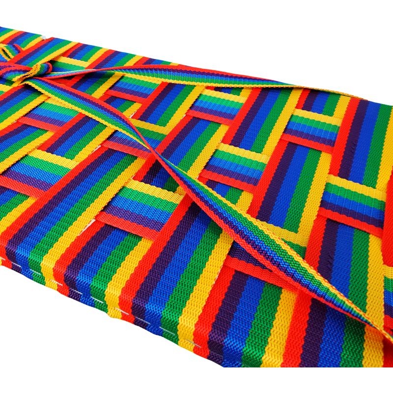 • Siège en sangle colorée – confort et style – Le siège est tressé à partir d'une sangle textile résistante aux couleurs vives. Élastique et robuste, il offre une excellente ventilation et, grâce à son tissage dense, conserve sa forme même après plusieurs saisons.