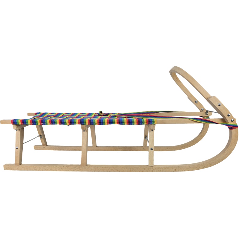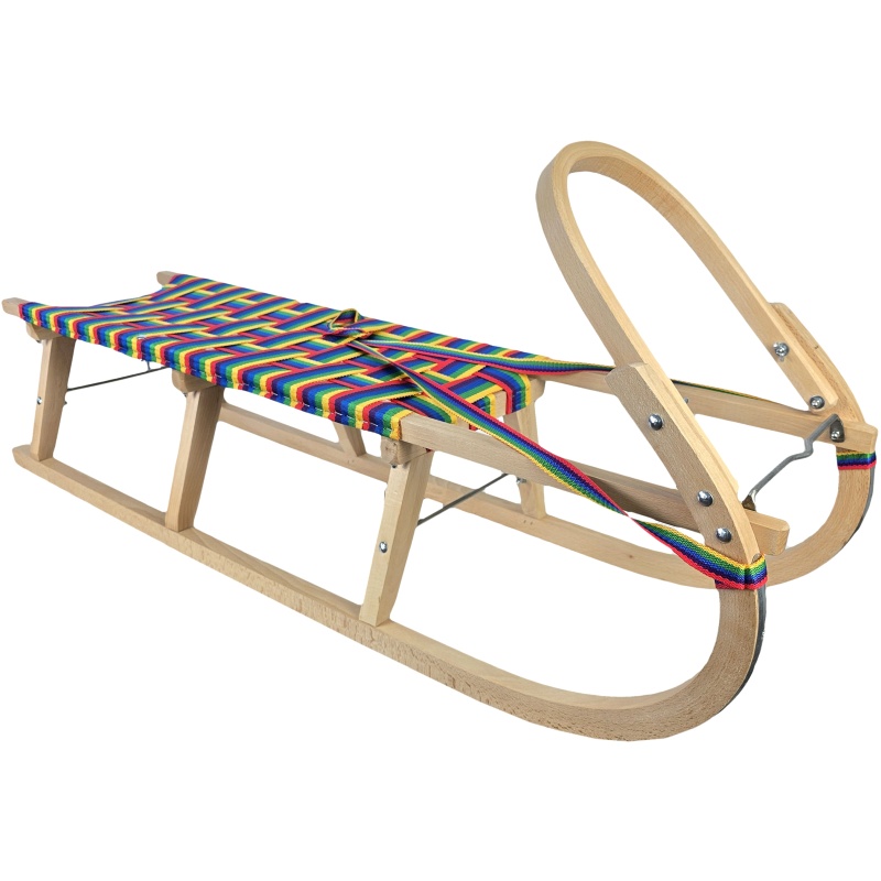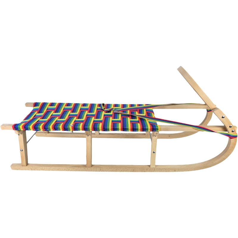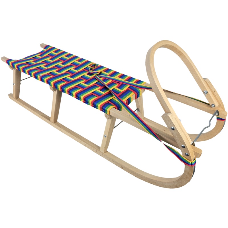 Cette luge traditionnelle en bois sans dossier impressionne dès le premier coup d'œil par sa finition soignée, son siège coloré et son arceau avant distinctif, qui sert de poignée pratique pour la traction. Fabriquée en hêtre de haute qualité et dotée de renforts métalliques, elle allie robustesse, durabilité et longévité. La sangle d'assise tissée colorée est à la fois élégante, extrêmement solide, bien tendue et confortable. Que ce soit pour la luge en montagne, les excursions hivernales ou pour transporter vos enfants au quotidien dans la neige, ce modèle offre tout ce dont vous avez besoin, sans compromis.