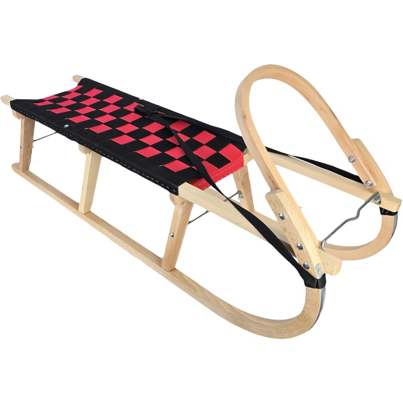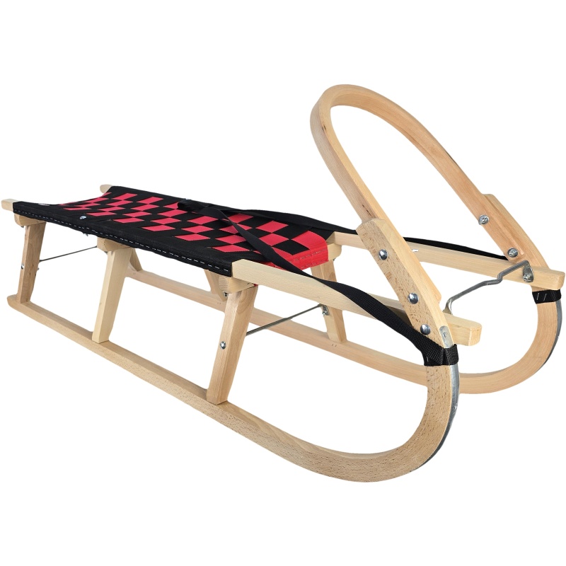Cette luge en bois sans dossier, au design moderne rouge et noir, allie savoir-faire traditionnel et allure sportive distinctive. Fabriquée en hêtre massif, équipée d'une poignée avant en arceau et d'un siège tressé en larges sangles, elle offre l'équilibre idéal entre robustesse, confort et style. Grâce à ses finitions soignées et à ses renforts métalliques, elle est stable et sûre, même à grande vitesse. Que vous l'utilisiez pour vous amuser dans la neige, en randonnée ou pour vos promenades quotidiennes, cette luge ne vous décevra pas.