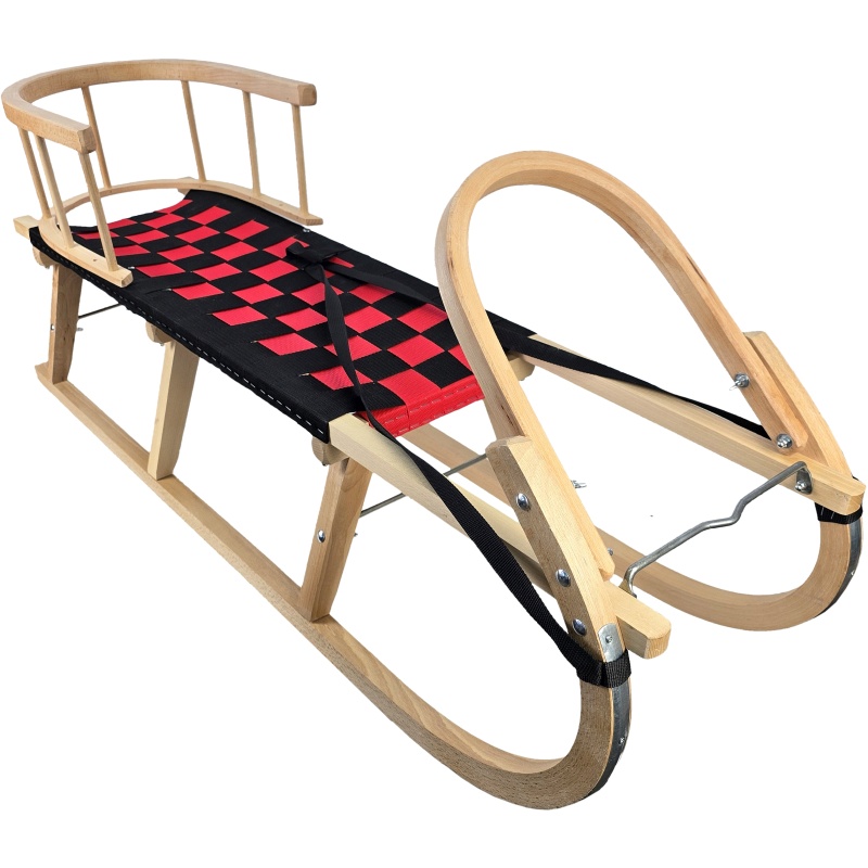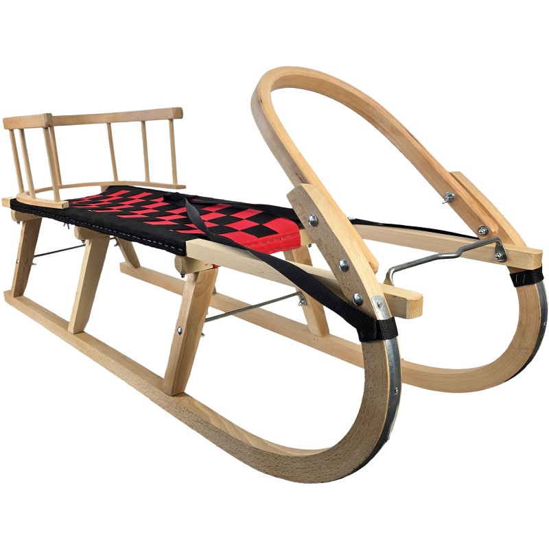 Cette luge en bois avec dossier allie à merveille fonctionnalité, sécurité et design moderne. Grâce à son bois de hêtre de haute qualité, son siège à sangles rouge et noir massif et son dossier en bois profilé, elle offre un confort maximal à chaque sortie. L'arche avant en bois courbé sert non seulement à guider la luge, mais aussi à renforcer la structure. Cette luge convient aux enfants de tous âges et peut être utilisée en hiver pour les sorties quotidiennes, les excursions et les vacances. Robustesse, praticité et design unique font de ce modèle un compagnon d'hiver apprécié.