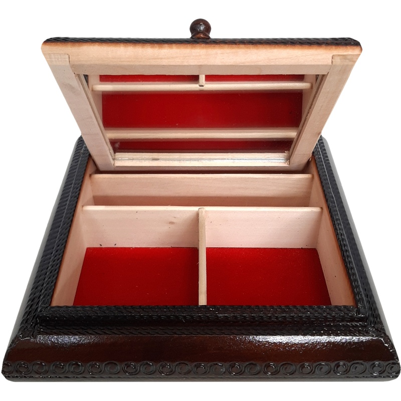 Apportez le charme de la tradition et de l'originalité à votre intérieur avec ce coffret à bijoux exceptionnel, sculpté à la main. Chaque détail de ce coffret est le fruit du travail minutieux d'artisans expérimentés qui mettent leur amour du bois et de l'art dans chaque motif sculpté.