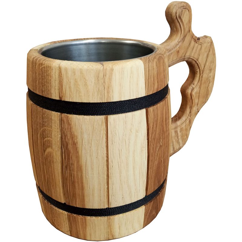 Verre artisanal en bois clair et foncé 0,5 L avec intérieur en acier inoxydable
