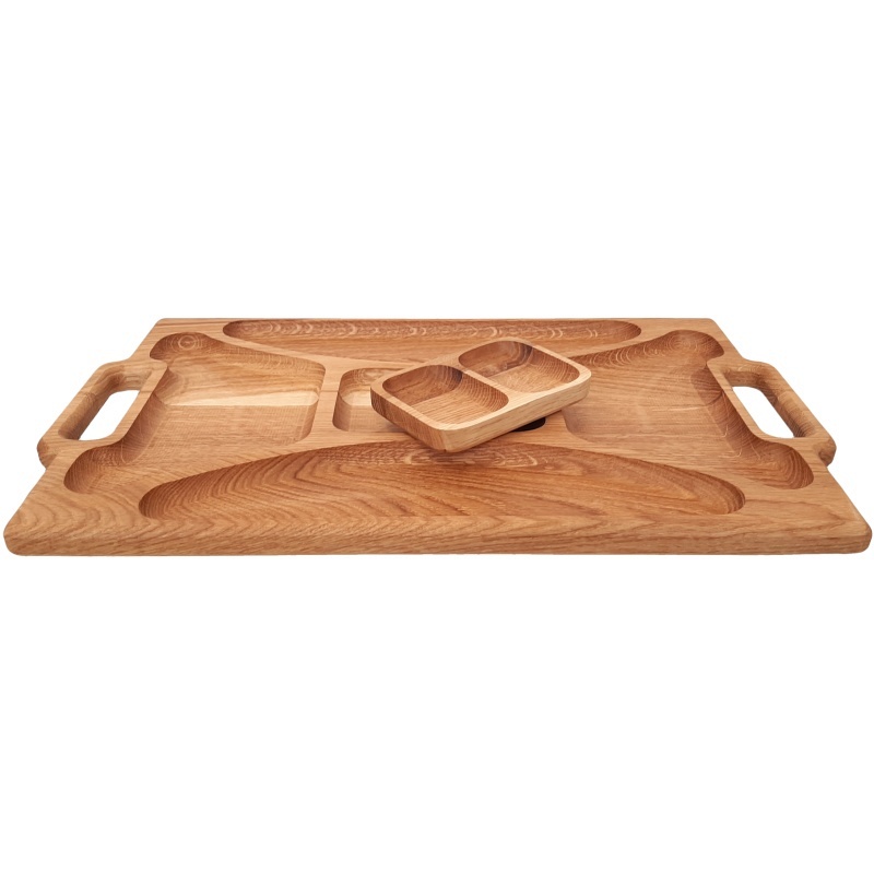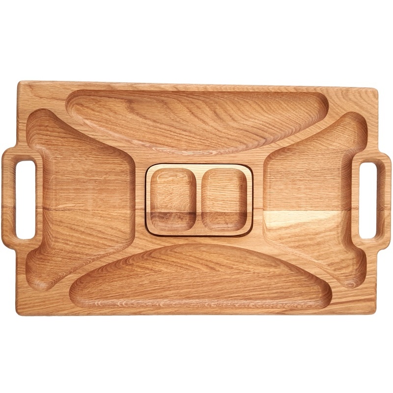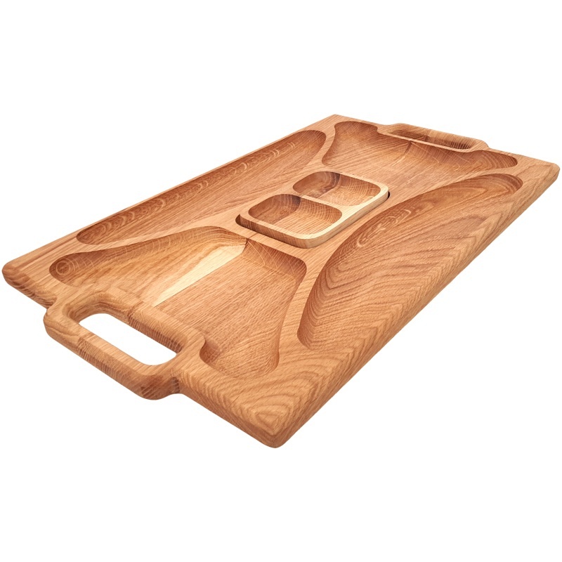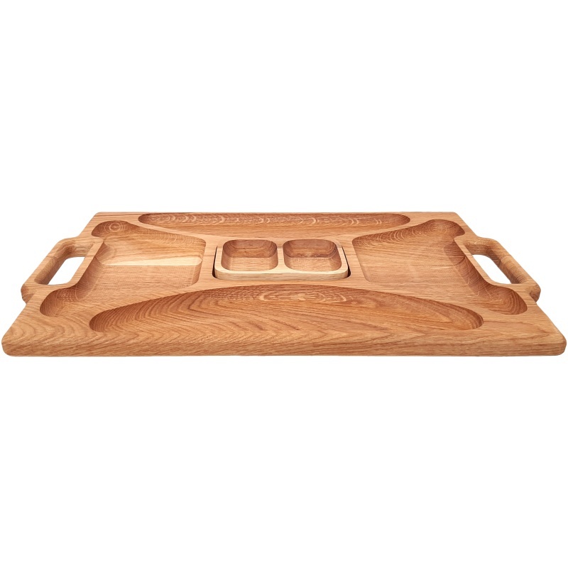 Cet élégant plateau en bois est la preuve d'un savoir-faire de premier ordre, alliant fonctionnalité et beauté naturelle. Fabriqué en bois massif de haute qualité au grain fin et naturel, il allie praticité et esthétique. Grâce à sa division en plusieurs compartiments et à ses poignées ergonomiques, il est le compagnon idéal de chaque service.
