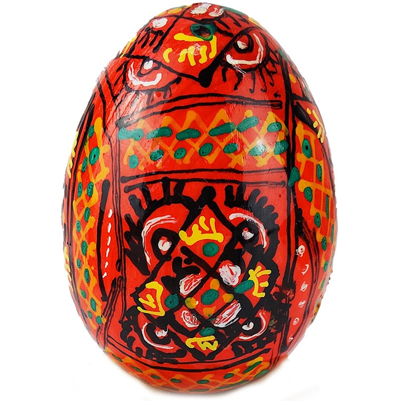 Ce magnifique œuf de Pâques d'un rouge profond attire l'attention par sa vivacité et ses motifs traditionnels, reflets du riche héritage culturel du folklore d'Europe de l'Est. L'association du jaune, du noir, du vert et du blanc crée des ornements contrastés et harmonieusement disposés, empreints de symbolisme. Chaque coup de pinceau est le fruit d'un travail manuel précis, ce qui fait de cet œuf non seulement un symbole de Pâques, mais aussi un authentique objet d'art, idéal pour toute collection ou tout intérieur.