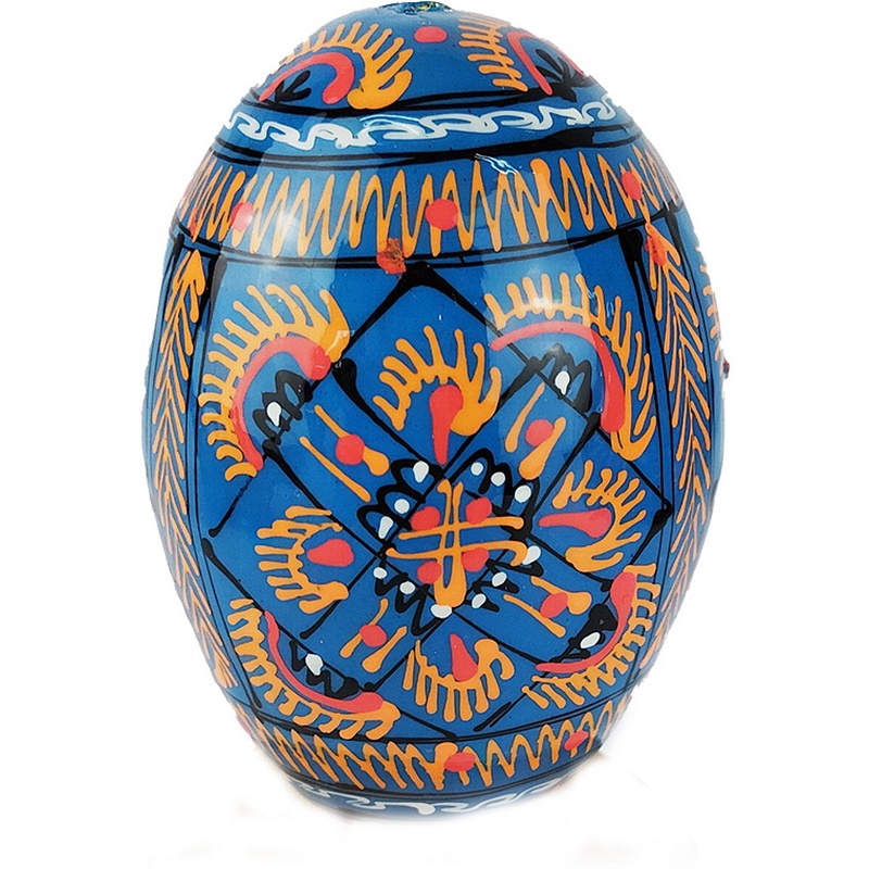 Un élégant œuf de Pâques d'un bleu profond, orné d'un riche ornement folklorique, allie harmonieusement tradition artisanale et couleurs vibrantes. Décoré de motifs jaunes, orange et rouges distinctifs, il crée des motifs circulaires et géométriques dynamiques. Chaque détail est réalisé à la main avec précision, ce qui en fait un œuf de Pâques véritablement original. Son aspect vibrant et sa valeur culturelle séduiront tous ceux qui apprécient la tradition, l'esthétique et les accessoires uniques.